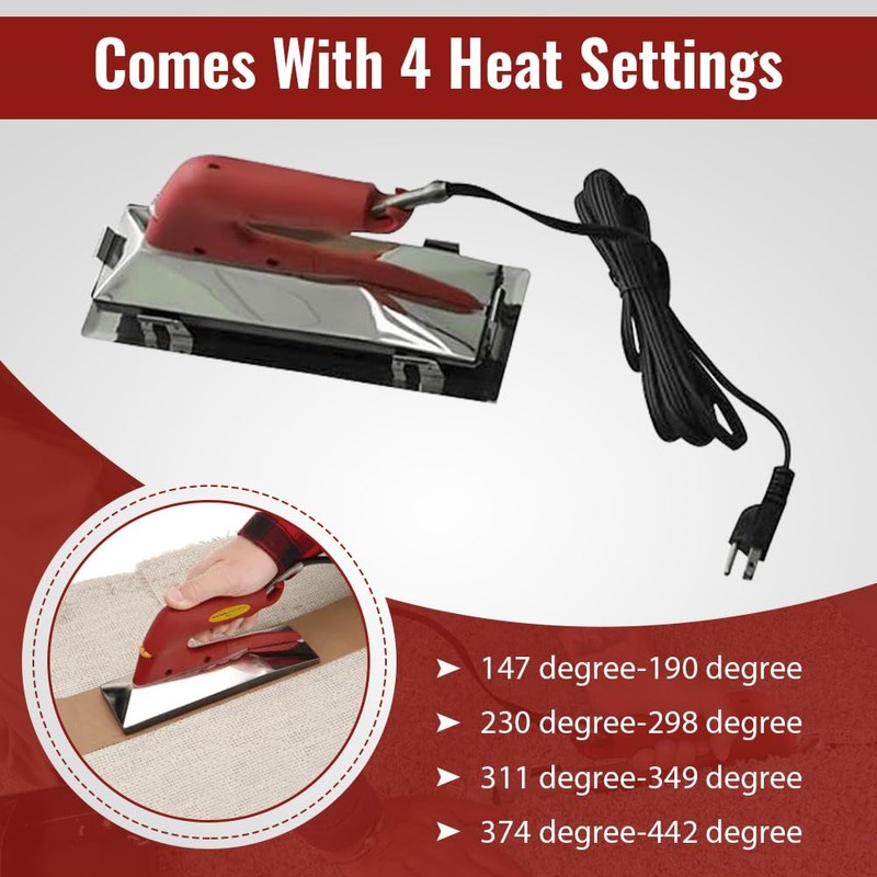 Zimpty ZY377 10in. 800-Watt Carpet Seaming Iron, Carpet Joining Tape - Super Heat Bond Seaming Red Stitch and Seaming Roller Spiked Star Grooming Carpet Pile Roller