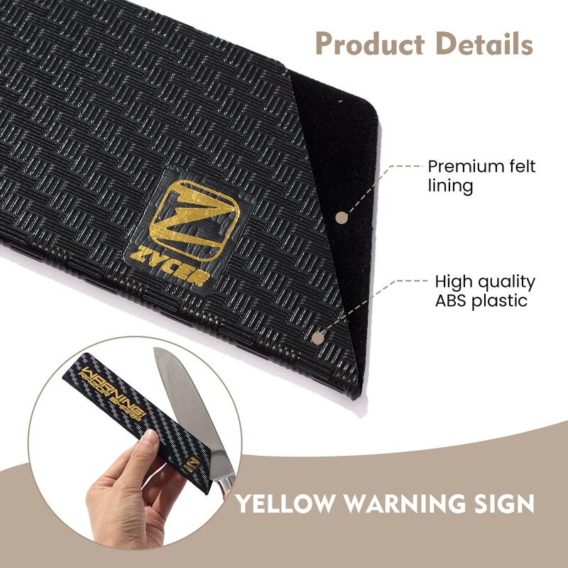 - It not only protects your knife in terms of material, but also the Yellow Sign reminds your friends who may be a new chef to use a variety of knives more carefully when they doing Food Prep at kitchen