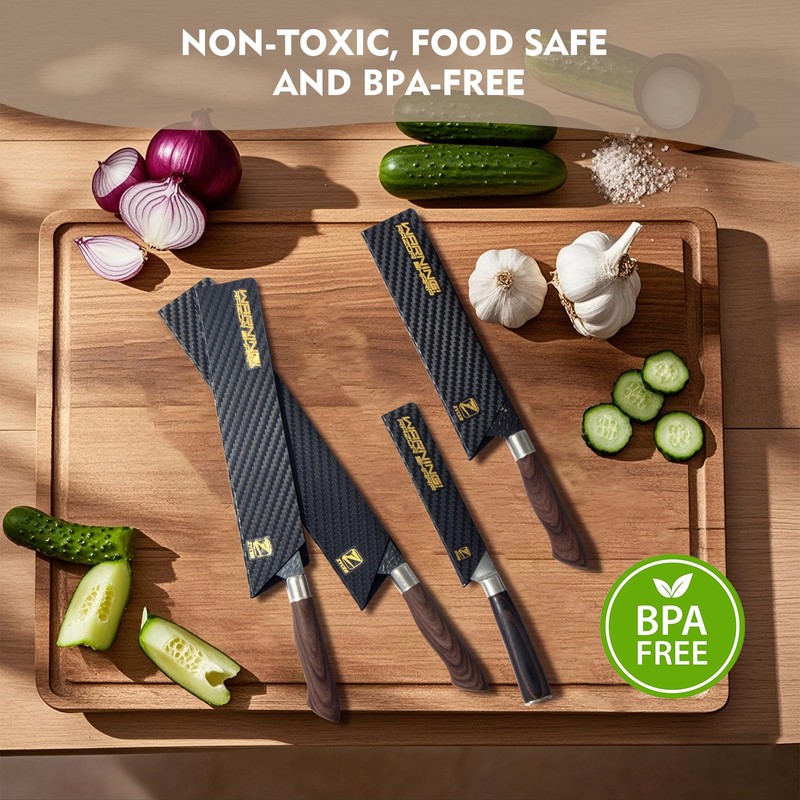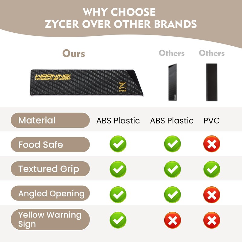 - Most knife guards are made with PVC but Zycer Knife guards are made with extra durable ABS plastic that is non-toxic, food safe and BPA-free. Which is more resistant to abrasions and helps protect your culinary knives while offering the sustainable support and reliability you need for long-term use.