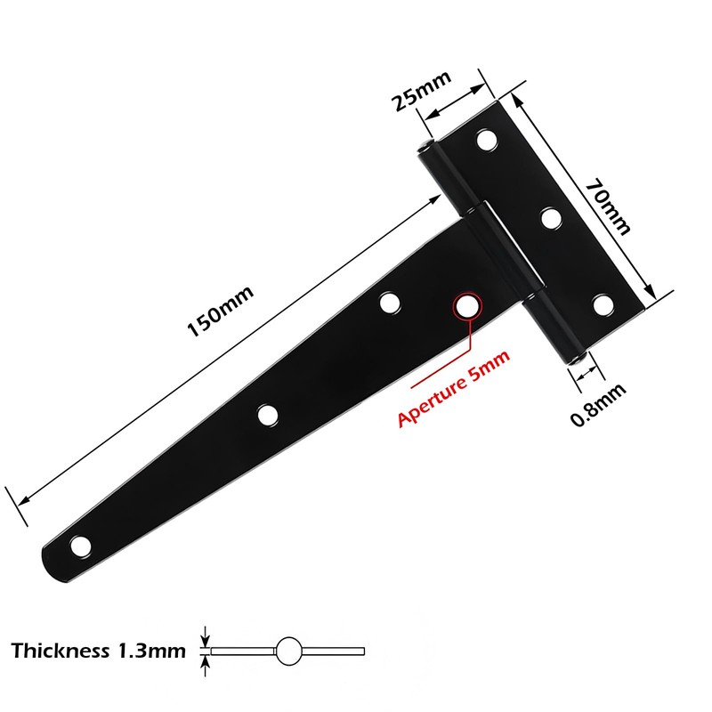 - 【Durable and Sturdy】The T-shaped folding hinge is made of high-quality iron material and processed with black baking paint. It can withstand large weight and frequent use, and has good corrosion resistance.