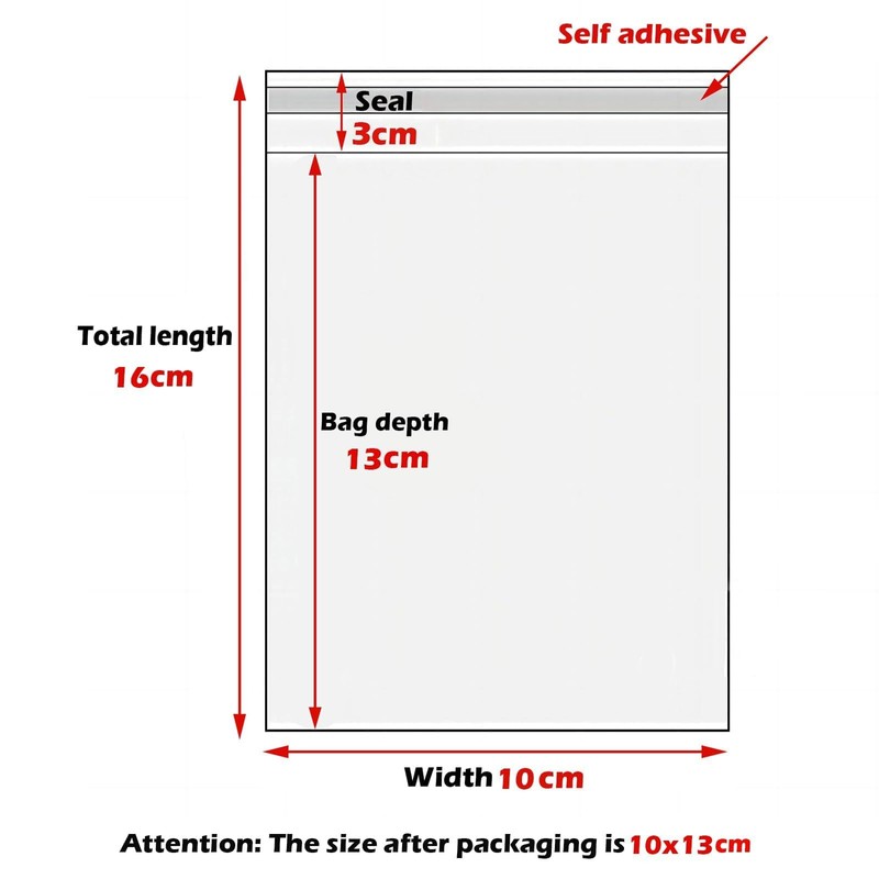 - Set of 200 pieces: these transparent packaging bags are made of high-quality OPP, with each bag size of 10 x 13 + 3 cm and a thickness of 70 μm (the glued size is 10 x 13 cm). Please note that the size is measured from the outside and is used to keep products smaller than the bag.