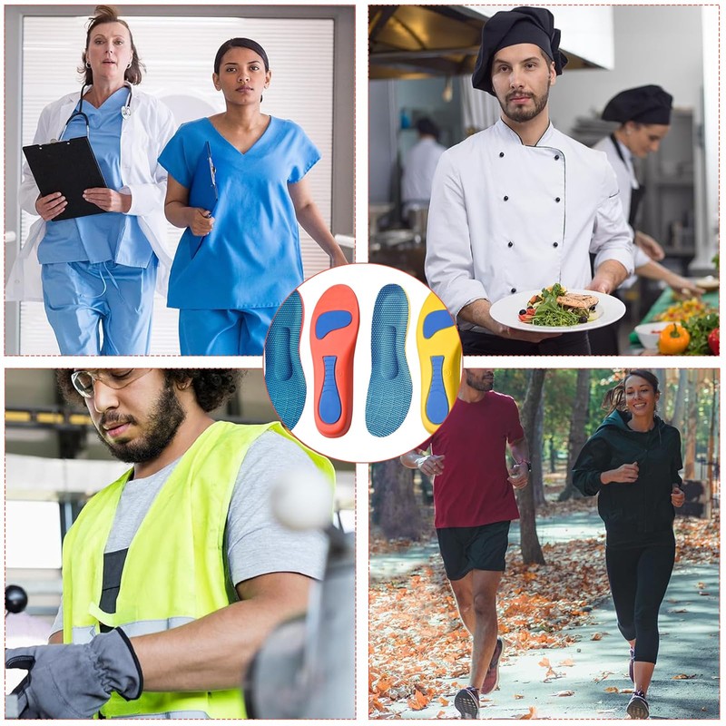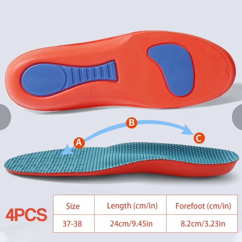 ZYEKIU 2 Pairs of Plantar Fasciitis Insoles, Shoes, Men's Orthopaedic Insoles, Soft Shoe Insoles for Shoes, Trainers, Sports, Leisure and Everyday Use (Size 37-38, One Pair of Red and Yellow)