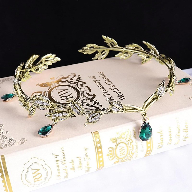 - Retro dream: this crystal crown cleverly combines novel and unique elements inspired by leaves and decorated with green rhinestones. It presents a fresh and natural beauty, radiates an enchanting light and sets the scene for a more noble and elegant temperament. Every detail of this women's crown has been carefully carved as if it had been woven by the elves in the forest, full of vitality and vitality