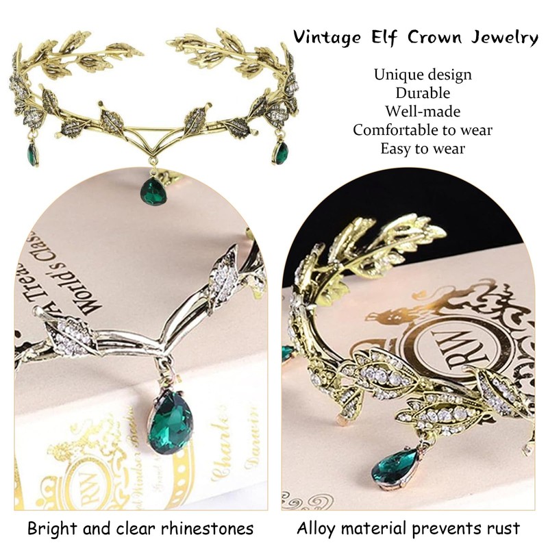 - High Quality Material This elf crown is made of high quality alloy and has a sturdy texture that can withstand all kinds of wear and tear from daily wear. This headpiece has been subjected to a precise electroplating process, which makes the surface smoother and finer, the colour more uniform and durable and it can also have a subtle, luxurious texture, ensuring that the elf crown remains radiant over the years