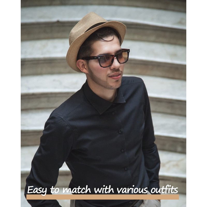 - Stylish Fedora Sun Hat: This Fedora Trilby Hat Is Decorated With A Ribbon Band,Short Upturned Brim,Looks Dynamic,Slightly More Artistic And Free-Spirited For Both Men And Women.Perfect For Outdoor Activities During Hot Weather.