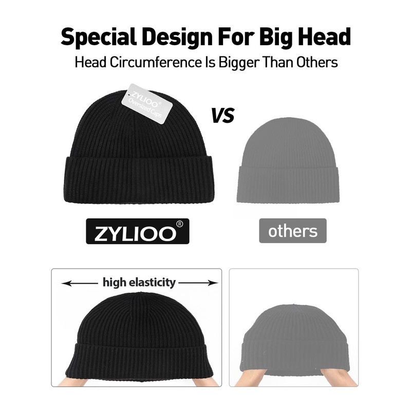 - Oversized Short Beanies: XL-XXL Fits Big Heads 23.5"-25.5".Short Length And Medium Thickness Enable Zylioo Fisherman Beanie To Keep The Warmth For Both Men And Women With Big Heads.