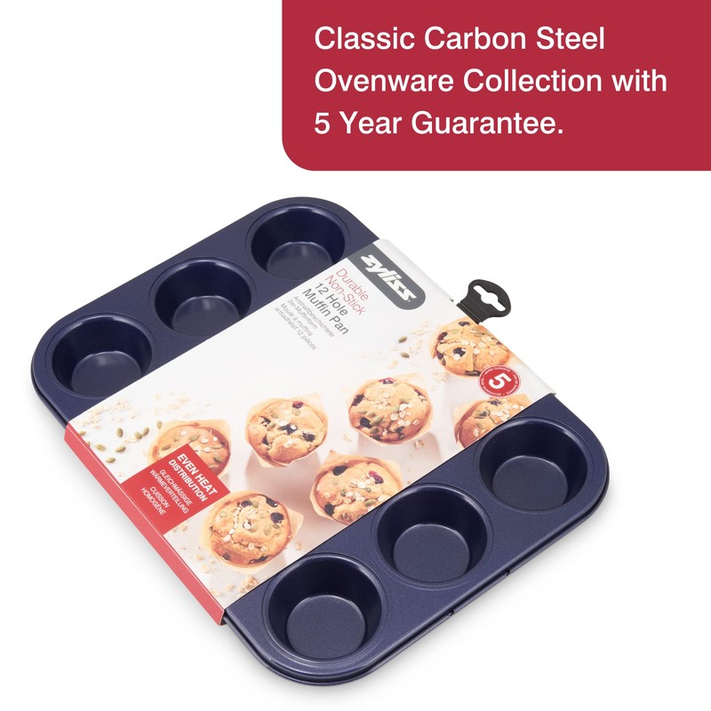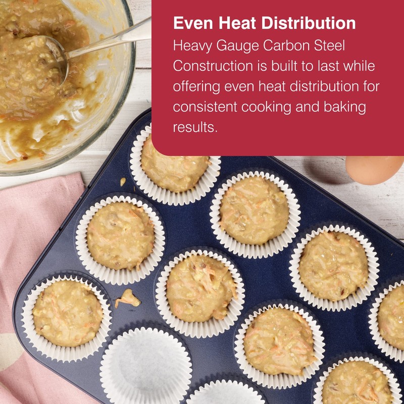 Zyliss 12 Hole Muffin Tray, Double Layer Non-Stick Baking Tray/Pan for Muffins/Cupcakes/Yorkshire Puddings, PFAS Free Durable Carbon Steel, Dark Blue, Dishwasher Safe
