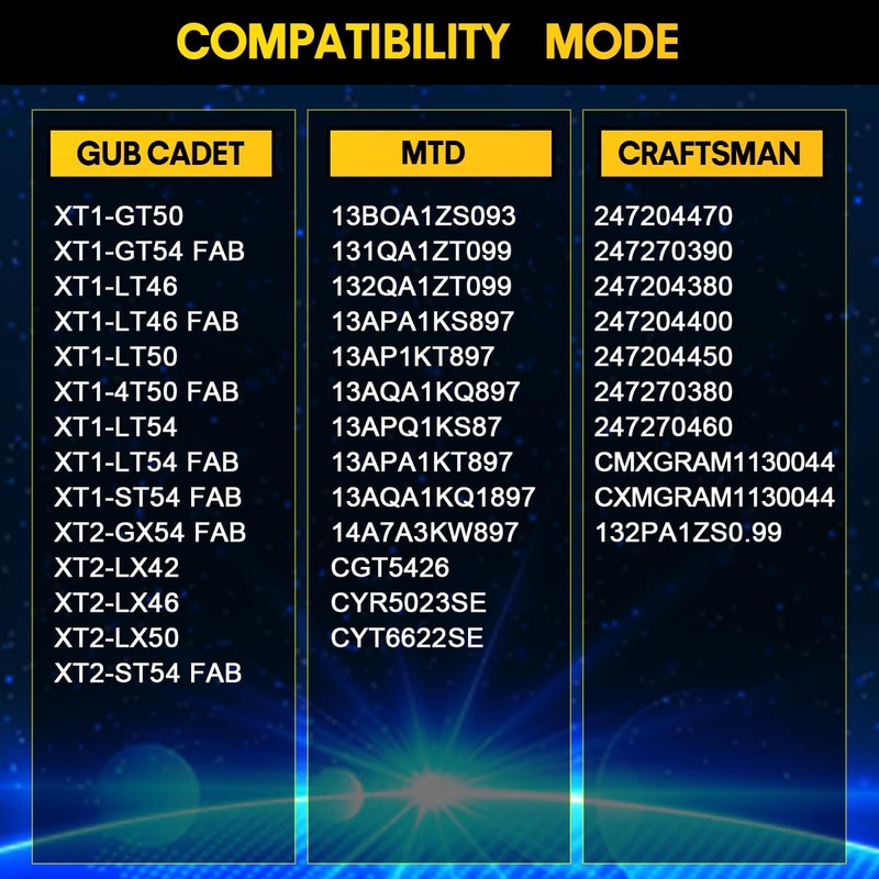 - cub cadet 946-05098c throttle cable:Throttle Choke Cable Compatible With Cub Cadet XT1-LT46, XT1-LT46 FAB, XT1-GT50, XT1-LT50, XT1-LT50 FAB, XT1-GT54 FAB, XT1-LT54, XT1-LT54 FAB, XT1-ST54 FAB, XT2-LX42, XT2-LX46, XT2-LX50, XT2-GX54 FAB, XT2-ST54, XT2-ST54 FAB Lawn Mower