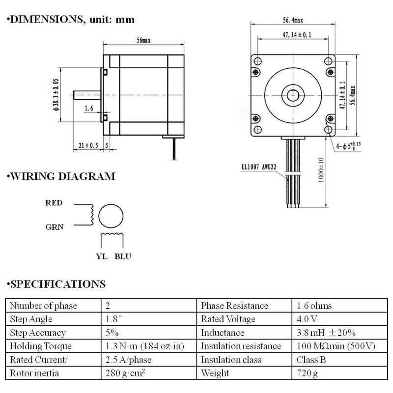 Zyltech Nema 23 Stepper Motor 2.5 A 1.3 Nm 184 oz.in 56mm Body w/ 1m Cable for 3D Printer/CNC