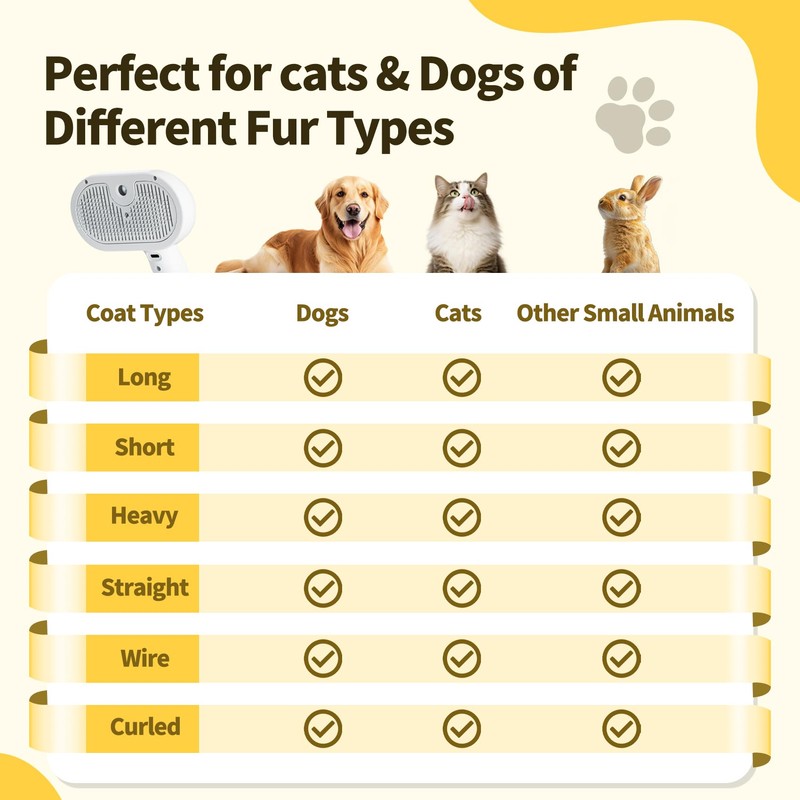 • 【Advanced Skin-Friendly Materials in Cat Steam Brush】 Built with Advanced Skin-Friendly Materials, this Cat Steam Brush uses ABS plastic, curved stainless steel pins, and 140° curved stainless steel pins. It’s safe for all skin types, ensuring comfort during grooming.