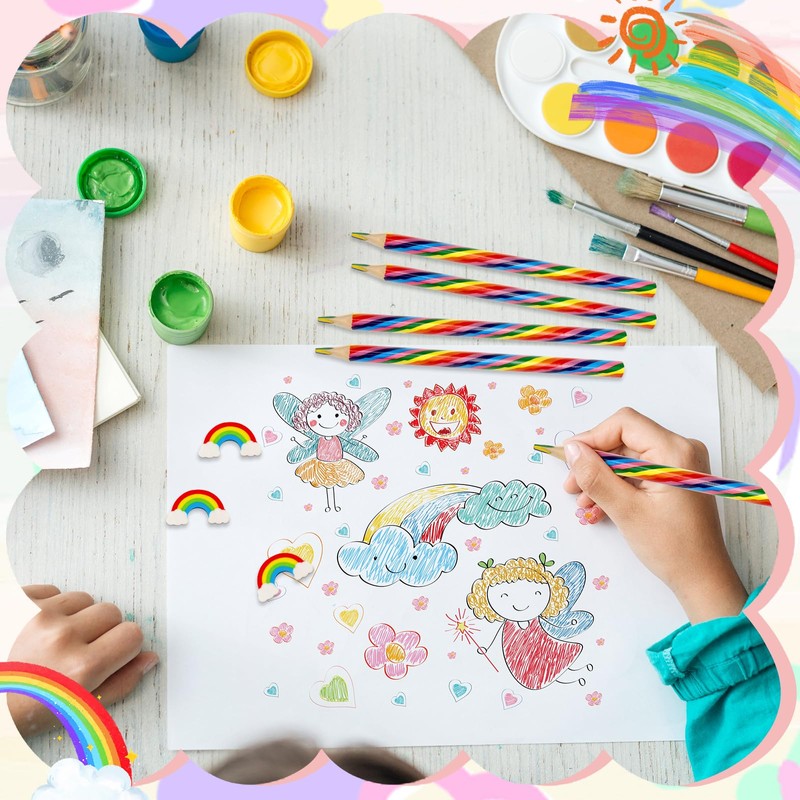 - 4 colours in 1 design: the coloured pencils have a colourful striped look and the lead core consists of 4 colours, which are bright and colourful and can create great visual effects. They are very popular stationery for children.