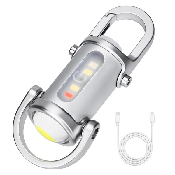 Zypilatsry 1200LM Super Bright Mini Led Flashlights USB Rechargeable Small Waterproof Keychain Flashlight Rescue, Camping-Silver