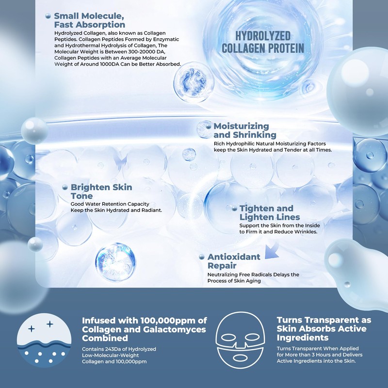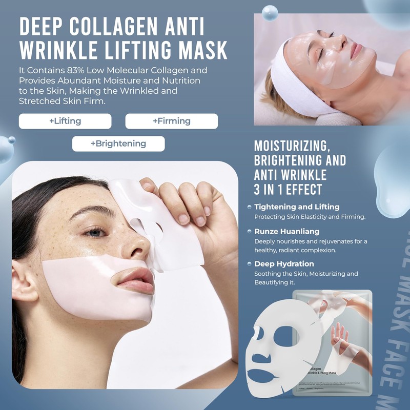 • [PORE TIGHTENING AND SMOOTHING] This collagen facial mask targets enlarged pores, smoothing fine lines and wrinkles. Its pore-tightening benefits enhance absorption, making your skin look firmer and more youthful. Achieve a flawless, lifted complexion with regular use of this Korean sheet mask.
