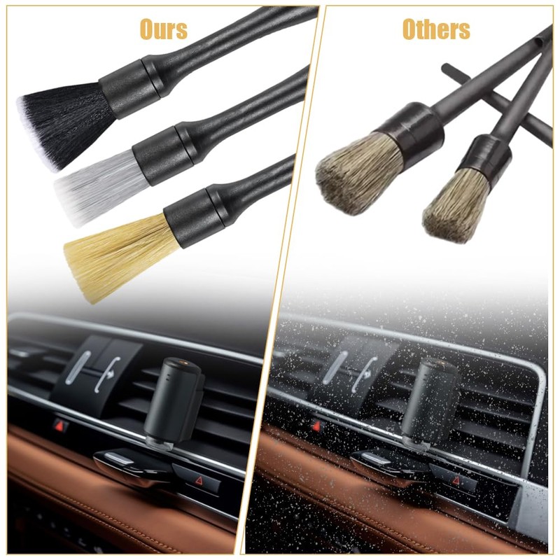 - HOCHWERTIGES BORSTENDESIGN: Jede auto detailingbürste ist aus dichtem Wildschweinhaar und chemikalienbeständigem Nylon gefertigt und gewährleistet eine effiziente Reinigung, ohne den Lack zu beschädigen. Die car detailingbürste verfügt über ein metallfreies Design, um das Risiko von Kratzern zu vermeiden, und ist sowohl für den Nass- als auch für den Trockengebrauch geeignet