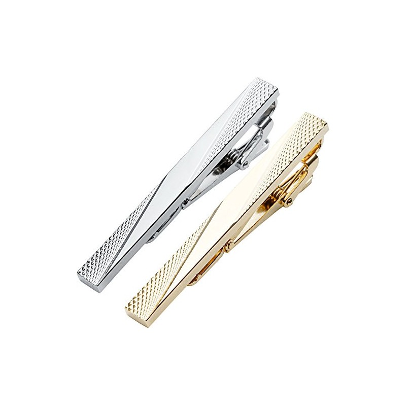 Zysta A Pair of Men's Tie Pin Tie Clip Set High-Quality Gift Silver Gold Stainless Steel (Style 2), stainless steel, Without Stone