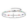 Zysta Dainty Cross Bracelet with Colourful Beads Double Layered 14k Gold Silver Plated Crucifix Chain Link Bracelets Communion Confirmation for Women (Silver)