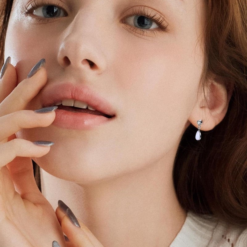 ZYTAIJEW 2pcs 16G G23 Titanium Internally Threaded Bezel CZ And Teardrop OP17 White Synthetic Opal Top Lip Stud Labret Monroe Tragus Cartilage Earring Ring Nose Piercing Jewelry 8mm