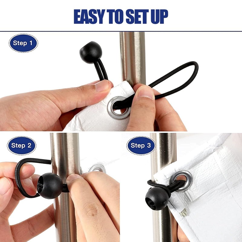 - 【Wide Application】: Our heavy duty elastic bungee balls are ideal for attaching tarpaulins, tents, flags, trampolines, blankets, poles, fishing rods, shade cloth. Also ideal for indoor use to tidy up messy cords, cables, hoses, curtains, or attach lights or other decorations.