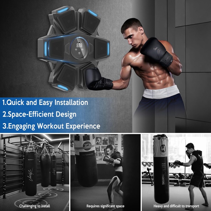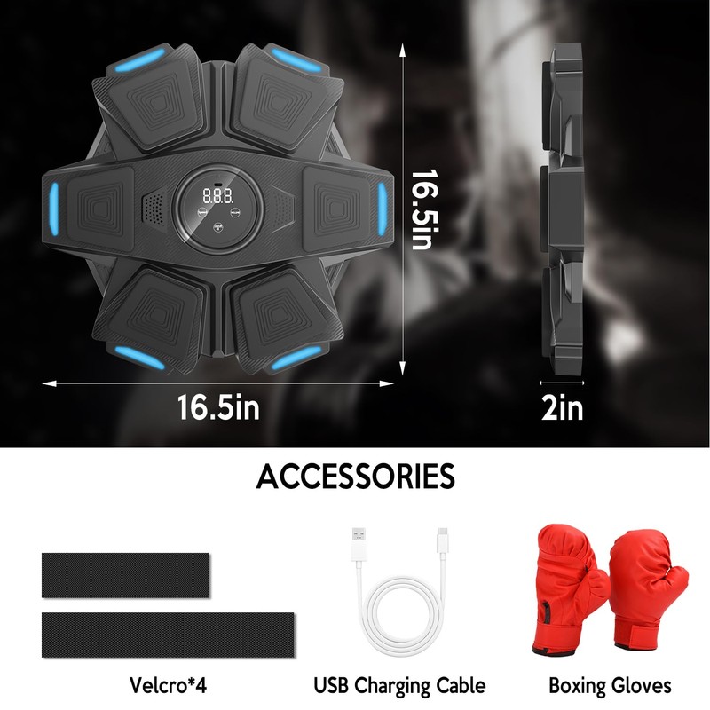 - 【Effortless Wall-Mounted Installation】- Save space and time with our music boxing machine. Designed for easy wall-mounting, it secures with strong Velcro or double-sided tape—no drilling required. This convenient setup allows you to enjoy a full workout at home, anytime. The package includes gloves, a USB charging cable, and instructions, making it the perfect addition to your home gym.