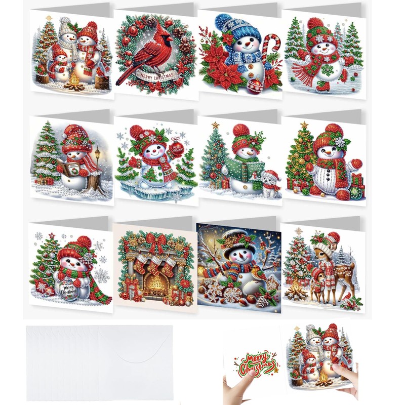 Zyvoreva 12 PCS Christmas Snowman Diamond Art Greeting Cards with Envelopes, Diamond Painting Greeting Cards Kit for Adults DIY Holiday (red)