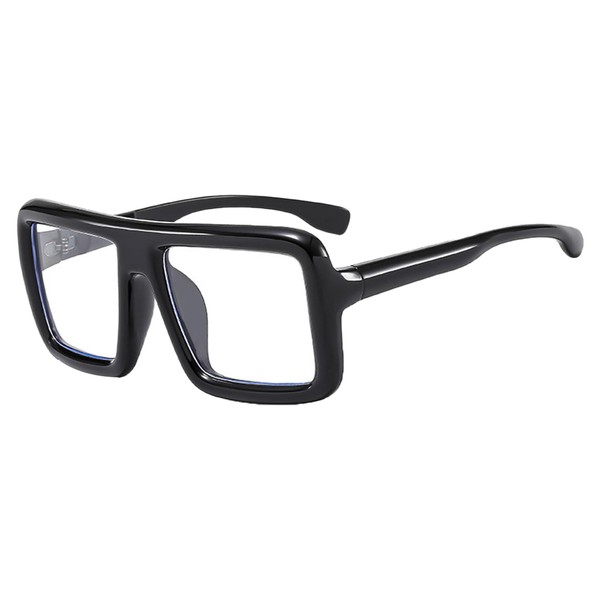ZYXTLY Oversized Square Nerd Glasses Black Frame Shiny Clear Lenses for Adults and Kids