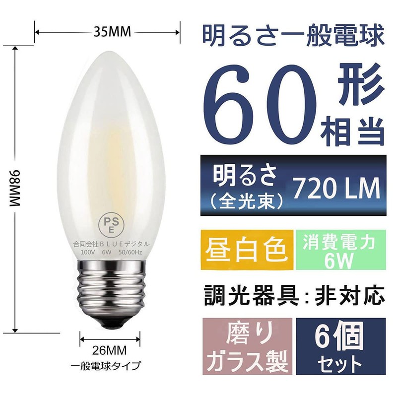 - [Bulb Product Information] - E26 Base (1.0 inches (26 mm)); Brightness: 720 lm; Rated Power Consumption: 6W (equivalent to 60W shape); Color Temperature: 4000K Daylight White; Size: Diameter 1.4 inches (35 mm) x Height 3.9 inches (98 mm); Ra≥80 mm); Not compatible with dimmer; Rated Power: 10 mm); Material: Polished glass material. Luminous Flux Angle: 3 60° wide light distribution