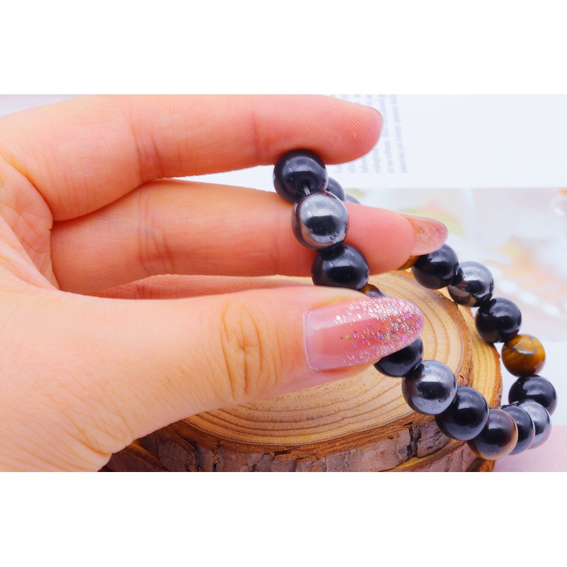 - 【Triple Protection Bracelet】Triple protection bracelets combine the most protective gems of all: Tiger’s eye, Black Obsidian and Hematite. Tiger's eye, or tiger eye stone, is cat-eye gemstone, It is good for our health;Black Obsidian can effectively help the human body eliminate negative energy and enhance new energy at the same time;Hematite can deliver energy and avoid all kinds of harm, It can enhance self-confidence,stabilize yourself and stimulate all aspects of the body and mind.