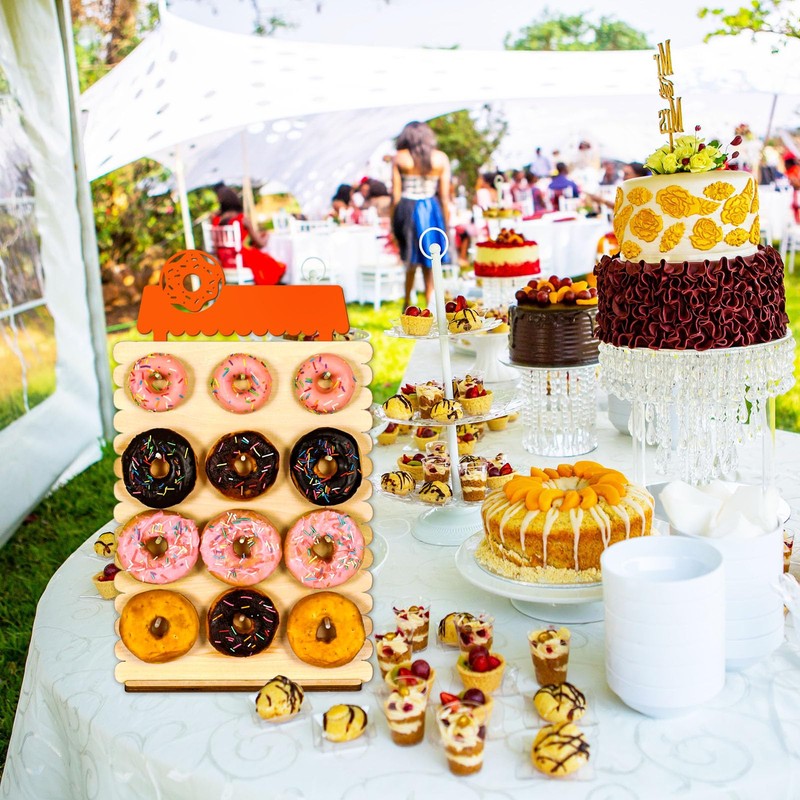 - Durable and reusable: Our donuts holder is made of high-quality wooden board, durable and strong. Sturdy bottom structure make it stable for standing at your party dessert table, you can place or take a donut from the donuts stand without worrying about messing it up. Besides, Our safe and special surface makes the donut stand very easy to clean after holding donuts with sugar and oil, you can use a wet tissue to wipe, and reuse the donuts stand at next party after its surface has dried.