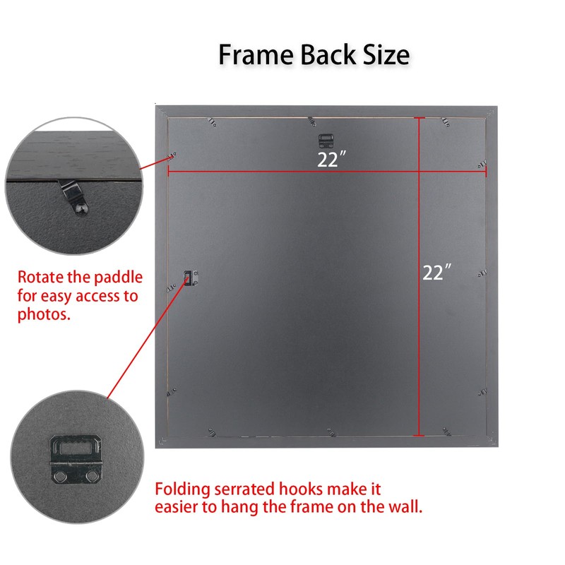 - đăNATURAL SOLID WOOD FRAMEă: 22x22 Picture Frames are made of natural wood. Unlike plastic material, wood will be more eco-friendly. Wooden frames are more eco-friendly more beautiful for home decoration.
