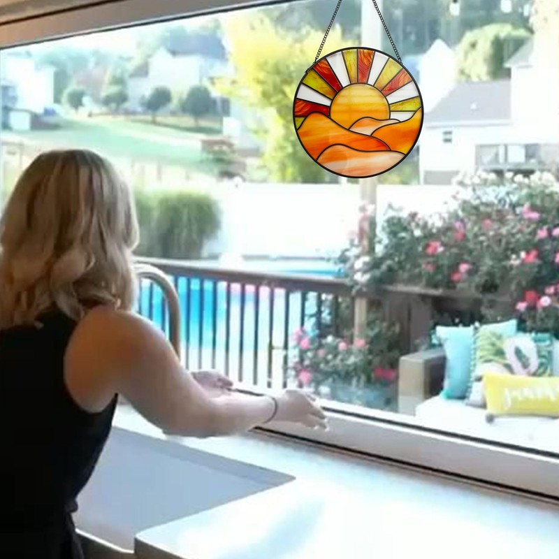 ZZHAOYI Sunrise Sun Catcher Stained Glass Window Hanging, 20cm Suncatchers for Wall Window Decor, Hand Painted Glass Artistic Birthday Gifts for Women