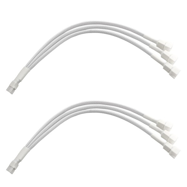 ZZHXSM 2PCS PWM Fan Splitter Cable 4 Pin One-to-Three Line 27cm Computer CPU Cooling Temperature Control Suitable for Computers Extension Cable Converter White