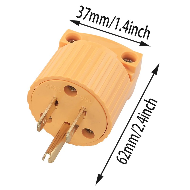 - Configured with a 5-15P industrial grade 3-pin plug, voltage:125V, current:15 amps, two poles, three wires, solid brass blades for enhanced conductivity.