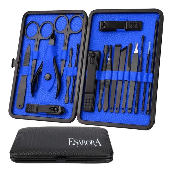 El kit de manicura profesional de contiene 18 herramientas para las uñas de manos y pies para realizar tres funciones: cuidado de manos, facial y de pies.