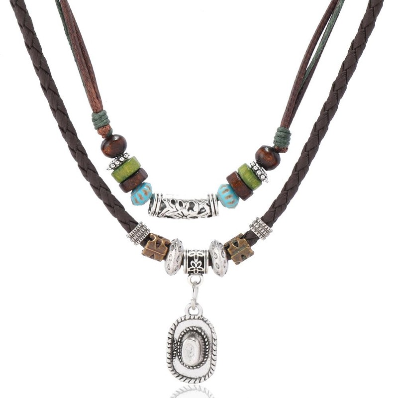 ZZQPSD Layered Boho Puka Shell Necklace Brown Coconut Wood Beads Western Necklace for Women Men Summer Surfer Beach Jewelry (cowboy hat)