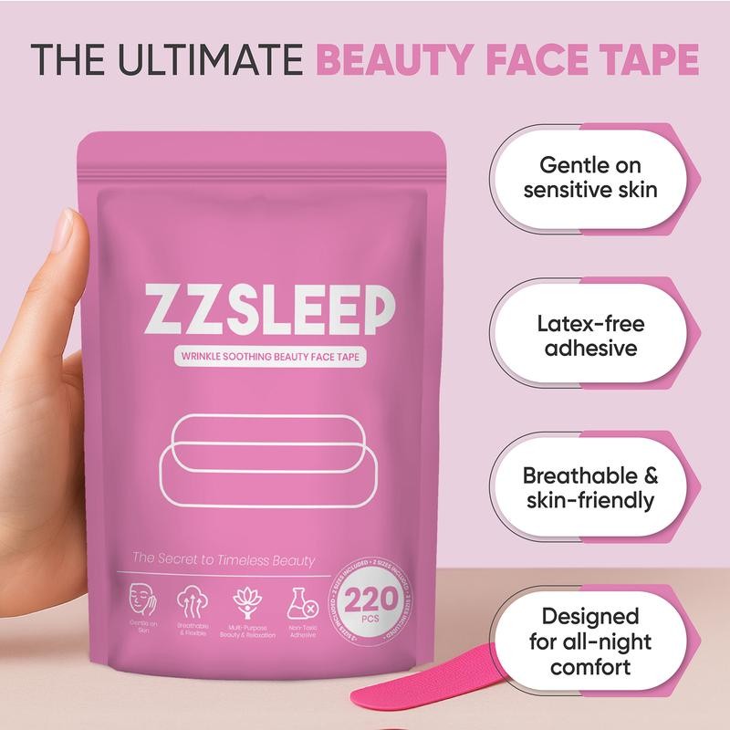Refresh your nightly skincare routine with ZZSLEEP Face Tape – pre-cut beauty strips designed to gently support your skin while you sleep. Made from breathable, latex-free kinesiology tape, these skin-friendly strips feature a soft adhesive that’s safe for overnight wear. Each pack includes 220 pre-cut strips in two sizes, ideal for smoothing common problem areas like the forehead, smile lines, and frown lines. Whether you’re targeting fine lines or simply want to wake up looking more refreshed, ZZSLEEP offers a simple, natural addition to your beauty regimen.