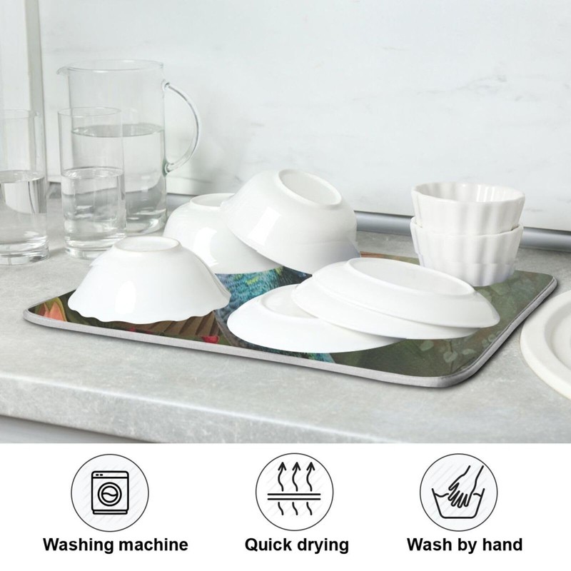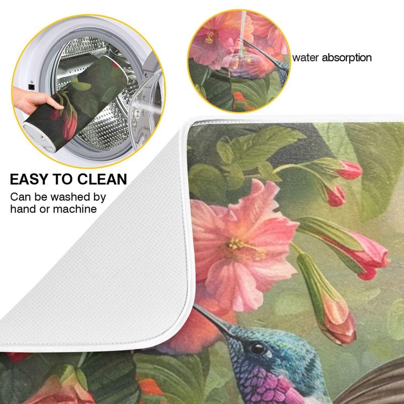 ZzWwR Beautiful Hummingbirds Flowers Absorbent Dish Drying Mat Microfiber Kitchen Countertop Table Protector Multi-Purpose Counter Rack Sink Drainer Pad (16 x 18 Inches)