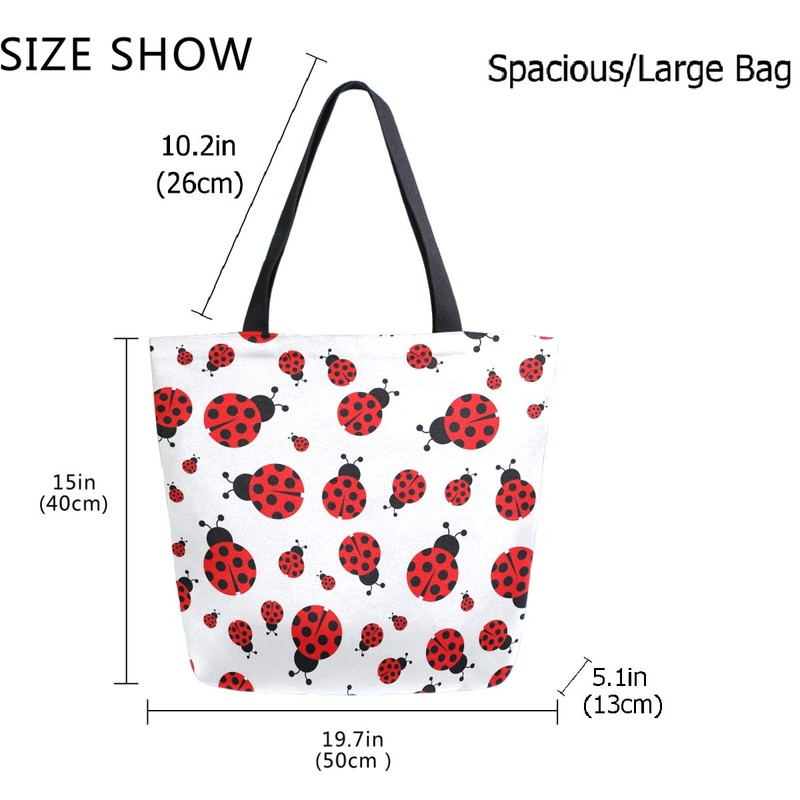 ZzWwR Fresh Ladybug Pattern Extra Large Canvas Beach Travel Reusable Grocery Shopping Tote Bag Market Portable Storage HandBags