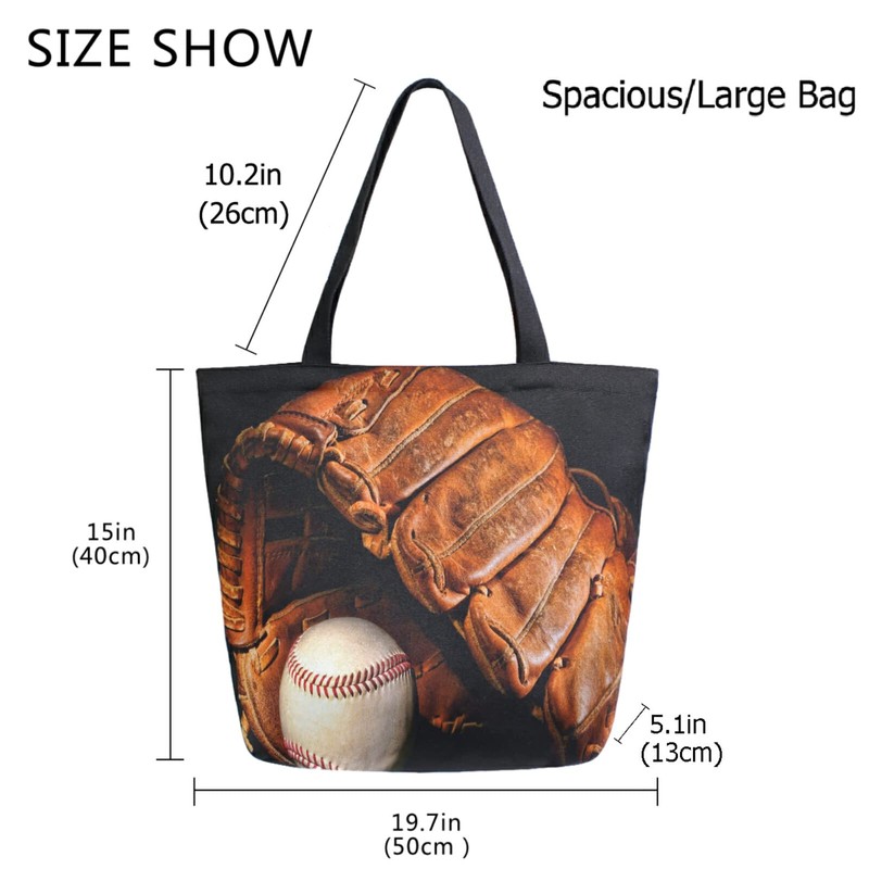 ZzWwR Old Baseball Extra Large Canvas Shoulder Tote Top Storage Handle Bag for Gym Summer Beach Weekender Travel Reusable Grocery Shopping