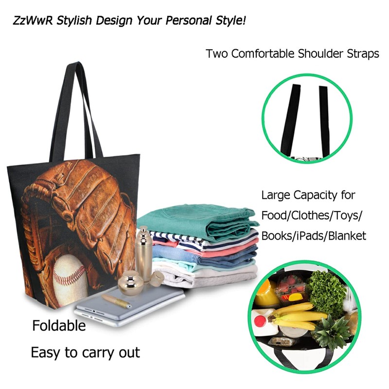 ZzWwR Old Baseball Extra Large Canvas Shoulder Tote Top Storage Handle Bag fo...