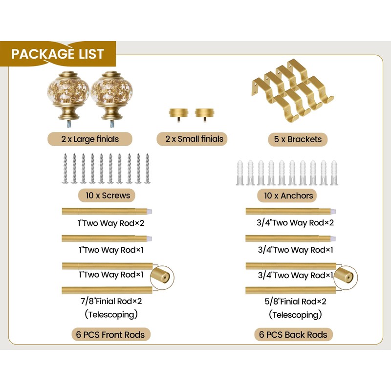 - ππππππ ππππππππππππ πππππππ: Our adjustable curtain rod comes complete with everything you need including rods, wall-mounted curtain rod brackets, screws, plastic anchors. We equip each set of curtain rods with a detailed instruction manual