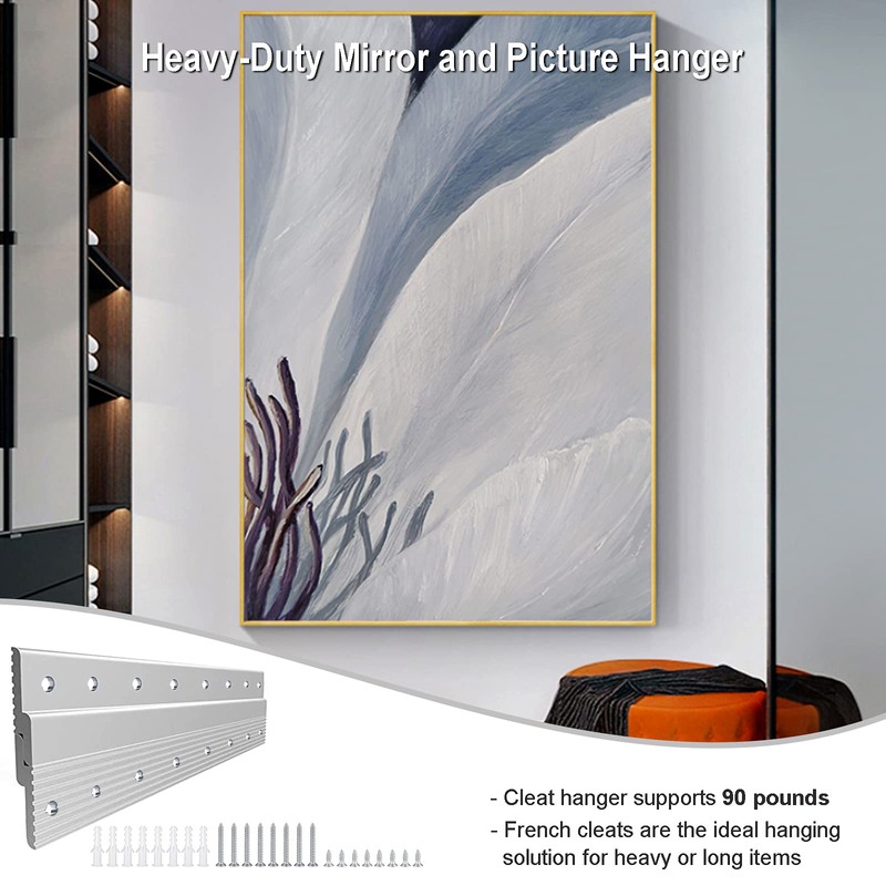 - 【Easy to Install】: The french cleat hanger is coming with enough screws and 8 * M5 holes for installing directly. Another interlocking design help to remove your design easily, just need to lift the picture or mirror, then remove hangers directly