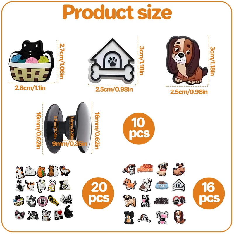 - 【Mix & Match Freely】: Tailor-made for DIY enthusiasts, this charms for crocs set allows you to blend and match various dog and cat designs to your heart's content, crafting a unique style all your own.Each mix is a fresh fashion adventure