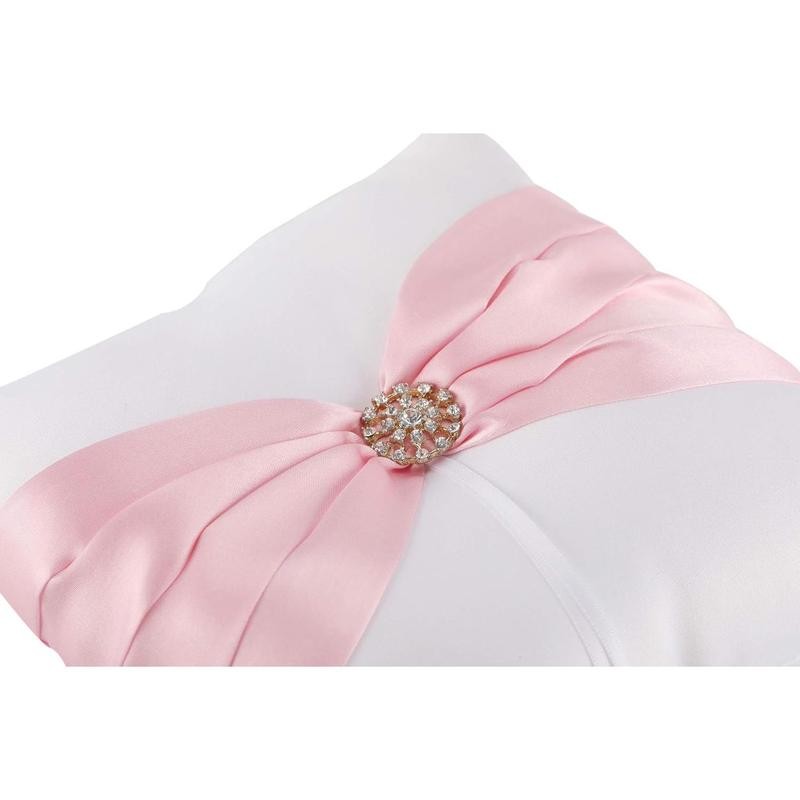 This wedding ring pillow is embellished with (artificial crystal + alloy)
