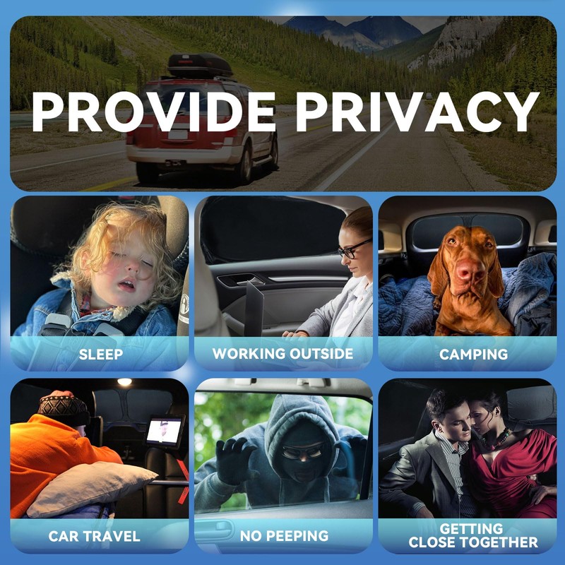 - 【Privacy & Cool 2 in 1】When you taking a nap,camping,parking outdoor,The sunshade will pride a cool inside all day.When you dating outside,You really need the privacy shades.