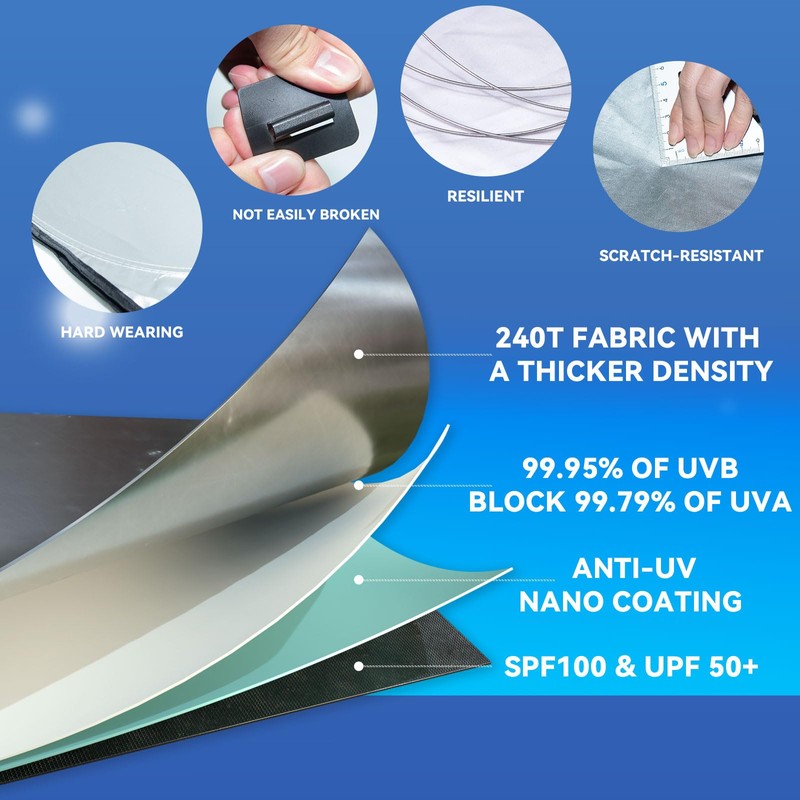 - 【Excellent Material】The double layer sunshades are made of 240T fabric with a thicker density, Nano coating, 4 anti-UV layers, and better reduce of the heat and UV rays. So useful is the sunshade that allows you to enter the car easily .