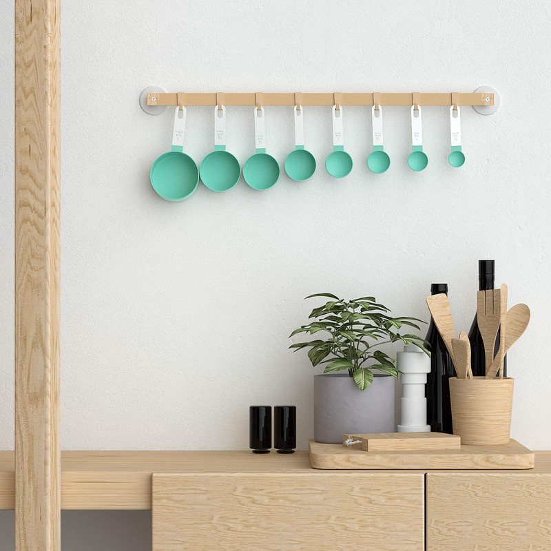 - 🍭 SPACE FRIENDLY DESIGN - Each Measuring Cup and Measuring Spoon has its own measuring scale and each one can be use individually. it has a convenient ring for keeping all the pieces together to conserve space in the drawer.
