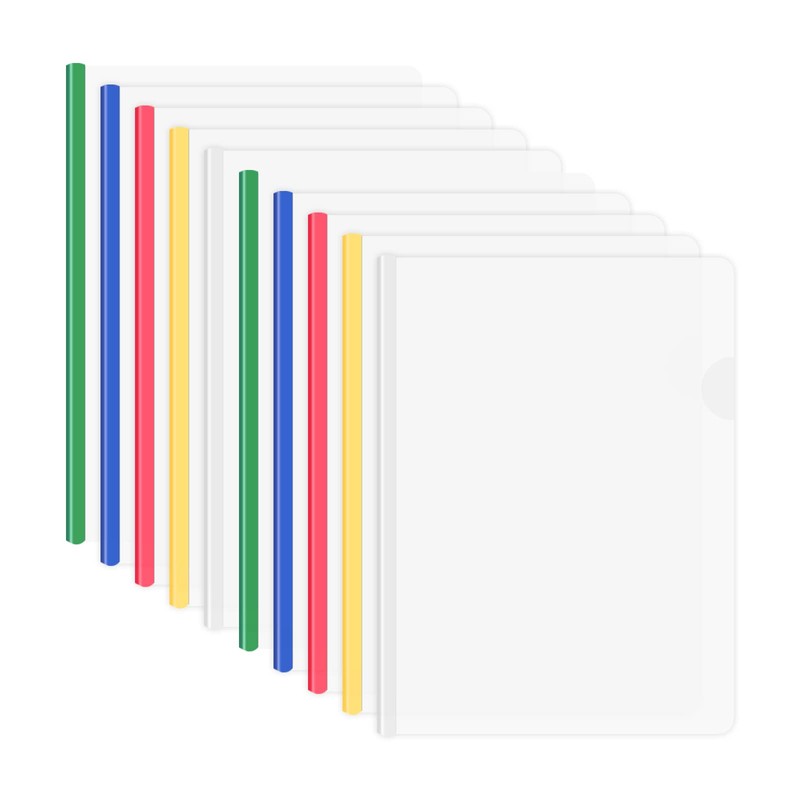 - 【10 Piece File Clip】Comes with 10 pieces A4 plastic report sleeves, each color for 2 pieces (dark blue, yellow, white, green, red), enough to collect and classify different documents