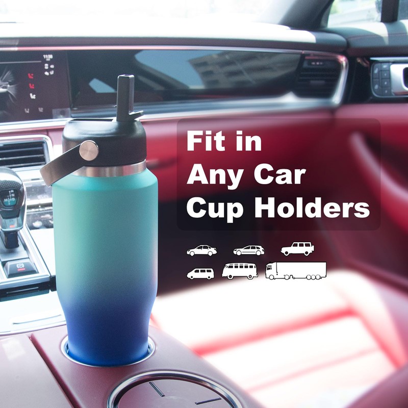 - 【T-SHAPED FOR CUP HOLDER】 Designed with a sleek and slim outline, this T-shaped water bottle fits in most car cupholders. ABOTOCUP T-shaped water flask suitable for outdoor when driving, cycling, beach holidays, and camping. 32 oz large capacity keeps your adventures running longer.