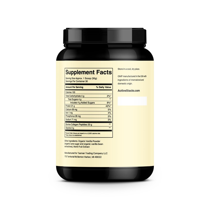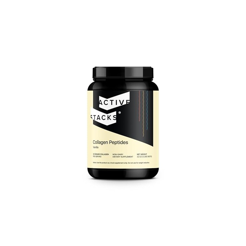 Active Stacks Collagen Peptides Protein Powder, Vanilla - Supports Healthy Hair, Skin, Bones and Joints for Men and Women - Easy-to-Mix Type 1 & 3 Hydrolyzed Collagen from Grass-Fed Beef, 2 Pound
