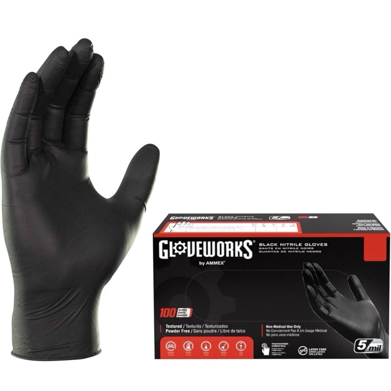 GLOVEWORKS BLACK NITRILE INDUSTRIAL DISPOSABLE GLOVES